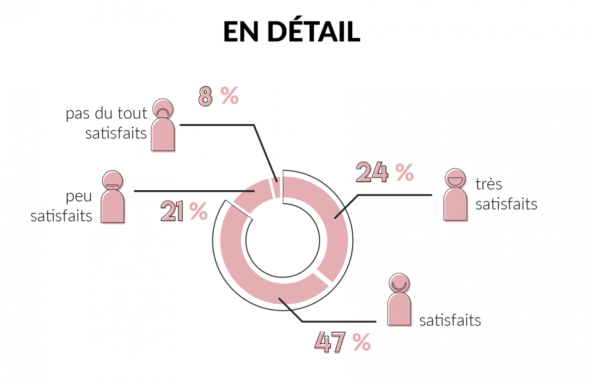 7 professionnels sur 10 se disent satisfaits de la saison. En détail, ce sont 24 % de professionnels très satisfaits, 47 % de satisfaits, 21 % de peu satisfaits et 8 % de pas du tout satisfaits,