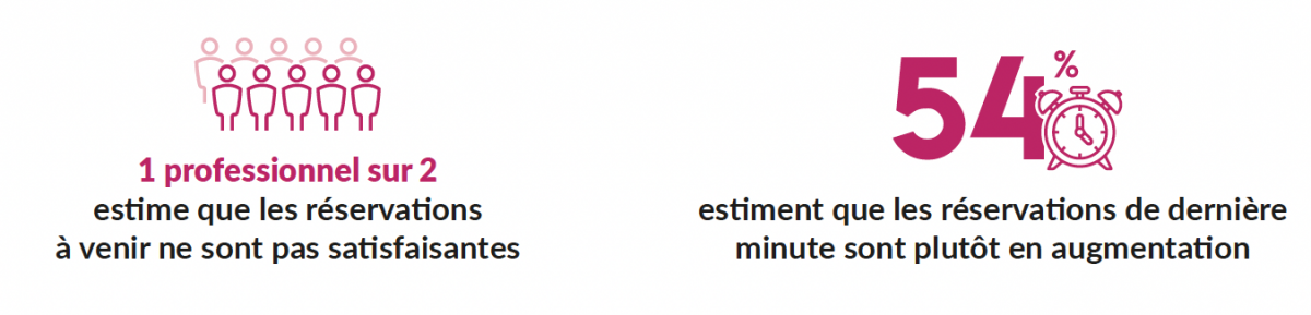 Cependant, 54 % des répondants estiment que les réservations de dernière minute sont plutôt en augmentation. Cette insatisfaction, pour un peu plus de la moitié des répondants, pourrait donc évoluer au dernier moment par ces réservations de dernière minute et la saison pourrait bien s’étirer un peu plus encore jusqu’aux vacances de la Toussaint.